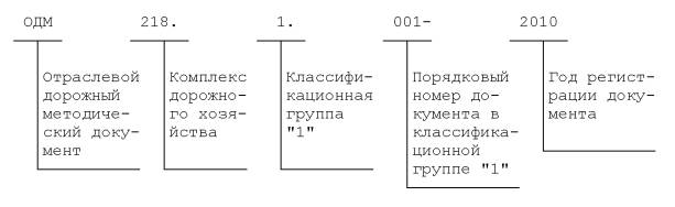 Обозначение отраслевых дорожных методических документов состоит из его номера, включающего в себя: