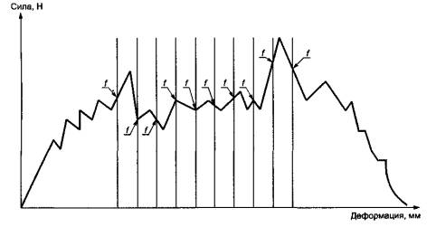 Рисунок Б.2 - Схематическое представление диаграммы по оценке и определению силы растяжения при испытании на стойкость к расслоению клеевого соединения внутреннего и металлического слоев