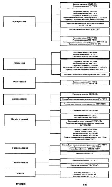 На рисунке 2 приведена классификация геосинтетических материалов по функциям применительно к дорожному строительству.