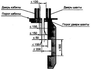 5 Шахта лифта 11 Зазоры между кабиной и стеной шахты лифта, со стороны входа в кабину, и между кабиной и противовесом или уравновешивающим грузом |