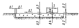 1. Ширина основания. 2. Толщина слоя. 3. Поперечный и продольный уклоны. 4. Ровность поверхности. 5. Отметки по оси основания |