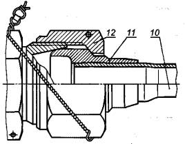 10 - законцовка трубопровода деформированная, исполнение 3 с переходным ниппелем 11; 12 - гайка переходная