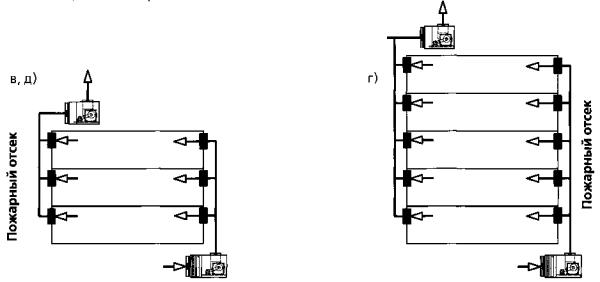 общеобменной и противодымной вентиляции, обслуживающих разные пожарные отсеки. Расстояние по горизонтали между проемами для забора воздуха, расположенными в соседних пожарных отсеках, должно
