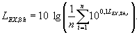 4.4.2. Если для каждого из п рабочих дней определены уровни 8-часового воздействия шума LEX,8h,i, дБА, то LEX,8h, дБА, по совокупности дней рассчитывают по формуле