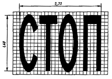 3.3 Номера, форма, цвет, размеры и назначение каждого типа разметки приведены в приложении А (таблицы А1 и А2). Размеры стрел, букв и цифр приведены в приложении Б (рисунки Б1 - Б9).