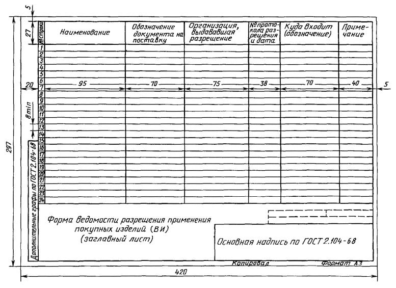 15.1 Документы прочие выполняют на формах 9 и приложения А, допускается применять формат A3 по ГОСТ 2.301, при этом основную надпись и дополнительные графы к ней выполняют в соответствии с требованиями ГОСТ 2.104 (формы 2 и ).