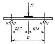 Масса М должна быть размещена без динамической нагрузки на квадратной жесткой детали со сторонами, равными ширине шинопровода, в центре между опорами на верхней поверхности оболочки. Масса М должна быть равна массе т той части секции, которая расположена между опорами, плюс дополнительная масса mL, устанавливаемая изготовителем и равная максимальной нагрузке, создаваемой присоединительной секцией и ответвительным устройством, которые могут быть присоединены на длине D.