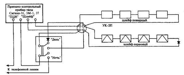 Приложение 4 СХЕМА обеспечения круглосуточной работы пожарных извещателей при подключении охранного и пожарного шлейфов на один приемно-контрольный прибор