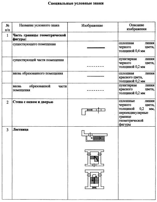 Приложение к Требованиям к подготовке технического плана помещения Специальные условные знаки