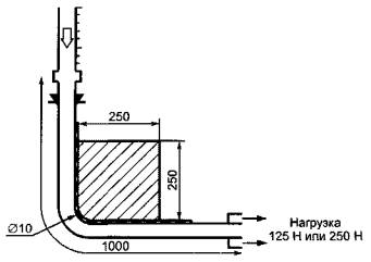 а) приспособление для изгиба шланга подачи воздуха под прямым углом с диаметром изгиба 10 мм. Схема испытания шланга на сопротивление перегибу представлена на рисунке 5;