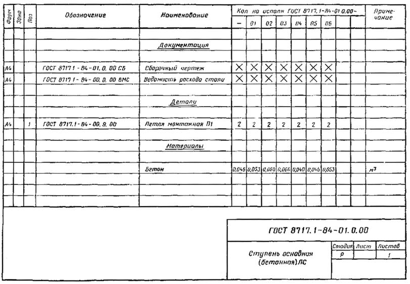 5. Спецификация арматурных и закладных изделий на одну ступень приведена на черт. 01.0.00-11.0.00.