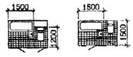 II - схемы планов кухонь с напольным оборудованием: а - с односторонней расстановкой; б - с двухсторонней расстановкой.