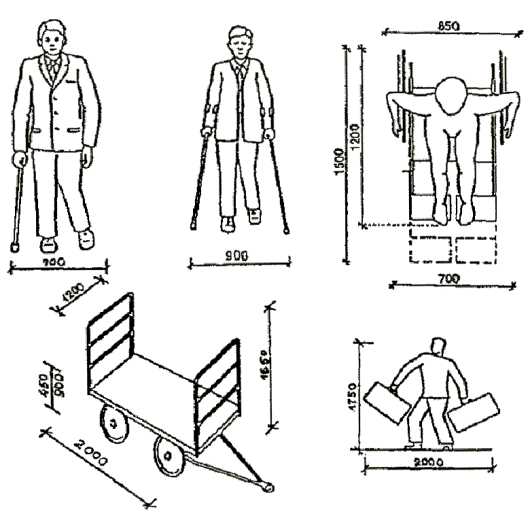 Черт. 1. Габариты маломобильных пассажиров и багажных тележек