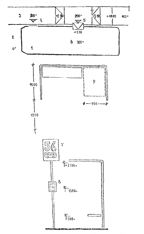 расположение окошек касс, камер хранения ручной клади и т. д. на пониженном уровне (0,8 м) (черт. 3);