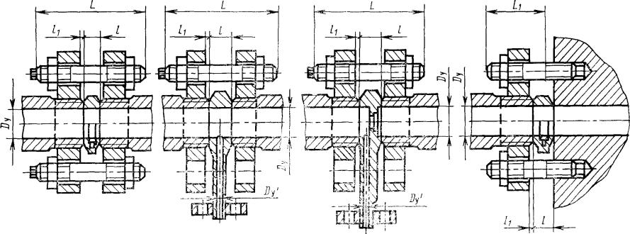 1.2. Детали трубопроводов изготавливают четырех исполнений. Для конкретной марки стали каждому исполнению соответствуют конкретные значения условного и пробного давления, приведенные в табл. 1.