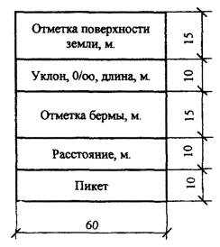 5.2.5. На продольной профиле линейных сооружений над боковиком слева от линии ординаты ГКО приводят отметки характерных уровней воды, дна и бровки канала высшего порядка (для оросительных каналов) или водоприемников (для осушительных систем), как показано на рисунке 2.