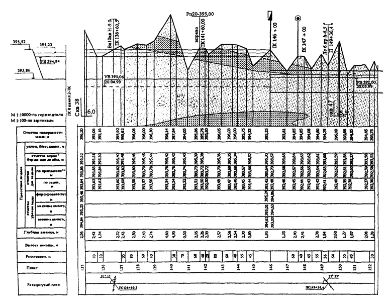 - поперечные профили линейных сооружений;