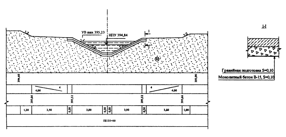 - конструкцию укрепления канала (схематично) с учетом требований ГОСТ 21.303 (таблица 4) и ГОСТ Р 21.1207 (таблица 4);