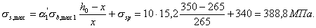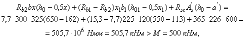 б) если условие (2) не соблюдается, т. е. x>h-h1 (см. рис. 3), расчет производят с учетом различного бетона в сжатой зоне элемента из условия