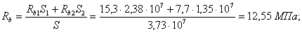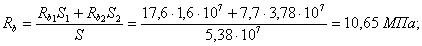 где S и Sj - статические моменты соответственно всей площади поперечного сечения сборно-монолитного элемента и площадей, образованных j-м бетоном с прочностью бетона Rbj, относительно оси, проходящей по центру тяжести крайнего растянутого стержня арматуры.