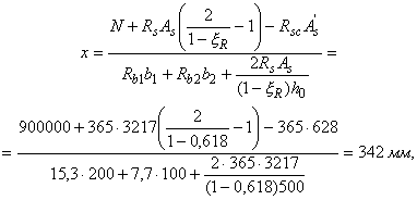 При этом высоту сжатой зоны x определяют по формуле