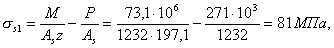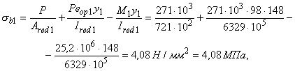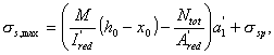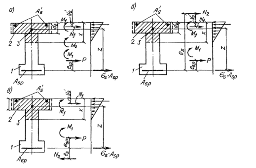 Mrp, 1 - момент усилия P относительно оси, проходящей через ядровую точку поперечного сечения сборного элемента, наиболее удаленную от растянутой зоны, трещинообразование которой проверяется, определяемый в соответствии с п. 4.5 СНиП 2.03.01-84; z1 - расстояние от центра тяжести площади сечения арматуры S до точки приложения равнодействующей усилий в сжатой зоне сечения сборного элемента над трещиной до приобретения монолитным бетоном заданной прочности, определяемое в соответствии с п. 4.28 СНиП 2.03.01-84.