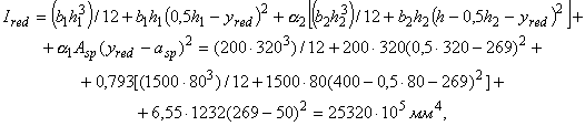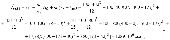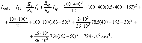 где (1/r)2 - суммарная кривизна от нагрузок, приложенных до приобретения монолитным бетоном заданной прочности (сила P, момент M1), и непродолжительного действия всей нагрузки, приложенной после приобретения монолитным бетоном заданной прочности; (1/r)3 и (1/r)4 - суммарная кривизна от нагрузок, приложенных до приобретения монолитным бетоном заданной прочности (сила P, момент M1), и соответственно непродолжительного и продолжительного действия постоянных и длительных нагрузок, приложенных после приобретения монолитным бетоном заданной прочности;