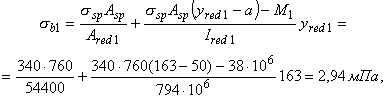где ssp - напряжение в арматуре S к моменту приобретения монолитным бетоном заданной прочности, определяемое в соответствии с п. 1.28 СНиП 2.03.01-84.