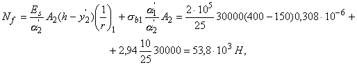 После приобретения монолитным бетоном заданной прочности на конструкцию действует кратковременная нагрузка. Поэтому определяем значение ys по формуле (156)