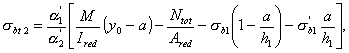 M2 - момент от соответствующей внешней нагрузки, приложенной после приобретения монолитным бетоном заданной прочности, относительно оси, проходящей через центр тяжести сечения конструкции, приведенного (по модулю упругости) к бетону сборного элемента; jb2 - коэффициент, учитывающий влияние длительной ползучести бетонов и принимаемый по табл. 2.