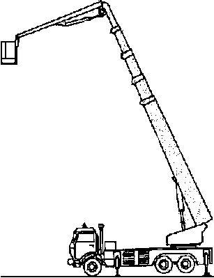 2.2. Пожарный автоподъемник (автоподъемник, АПК) * - пожарный автомобиль со стационарной механизированной поворотной коленчатой, телескопической и коленчато-телескопической подъемной стрелой, последнее звено которой заканчивается люлькой (ГОСТ 12.2.047-86).