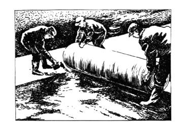 3.13. Рулоны дорнита раскатываются по песчаному основанию и скрепляются скобами, также, как и при строительстве постоянной дороги.