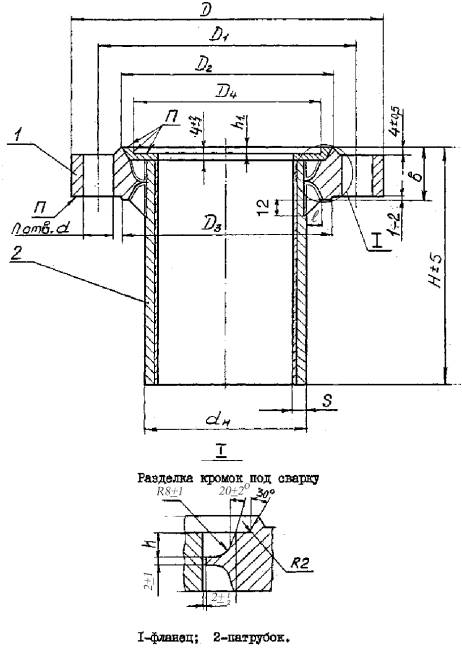 2. Конструкция и размеры штуцеров должны соответствовать указанным на чертеже и в табл. 1-2.
