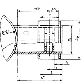 Примечание. Размер Dp необходимо корректировать в зависимости от фактического внутреннего диаметра оболочки для обеспечения допустимого зазора в сварном соединении в соответствии с ГОСТ 5264.