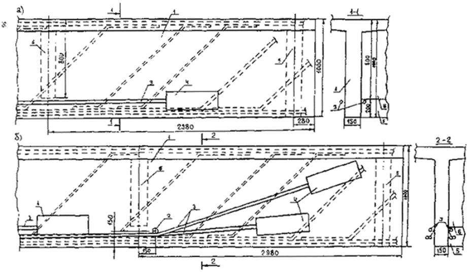 усиления внешней напрягаемой арматурой железобетонных пролетных строений эксплуатируемых мостовых сооружений как в продольном, так и в поперечном направлениях;
