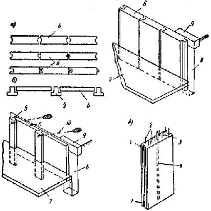 стен из панелей; б - конструкции стен типа панели-стойки; в -