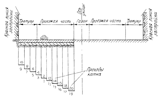 Температурные швы сжатия в монолитном покрытии устраиваются при ширине проезжей части 3,5 - 4 м через 6 м, при ширине проезжей части 5,5 - через 5 м.