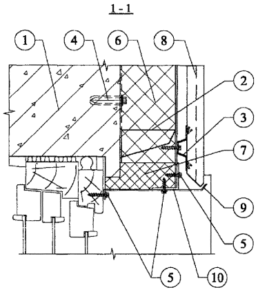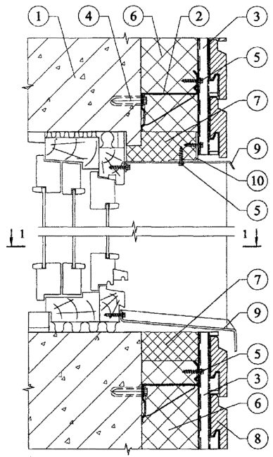 Рис. 3.14. Узел примыкания системы к оконному проему. Разрез 1-1.