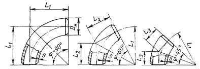 Рпр, Рраб, Ру - соответственно пробное, рабочее, условное давление в трубопроводе, МПа (кгс/см2); tдоп, tраб - соответственно допускаемая, рабочая температура среды, °С; Dy, dy - условный проход, мм; Dн, dн - наружный диаметр.