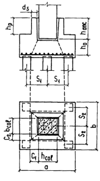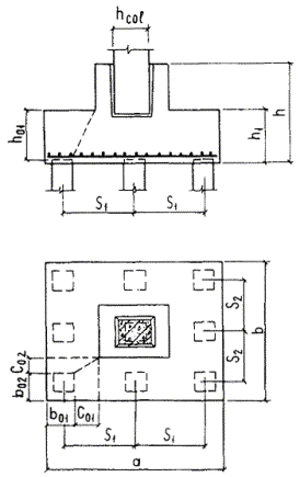 1.1. Пособие по проектированию железобетонных ростверков свайных фундаментов под колонны зданий и сооружений составлено к СНиП 2.03.01-84 „Бетонные и железобетонные конструкции” и распространяется на проектирование монолитных ростверков квадратной и прямоугольной формы в плане, с кустами из двух, четырех и более свай, под сборные и монолитные железобетонные колонны и под стальные колонны.