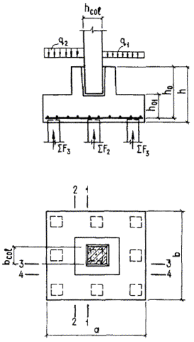 При расчете на продавливание центрально-нагруженных ростверков колонной прямоугольного сечения формула (1) приобретает следующий вид: