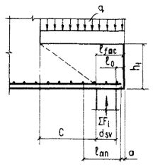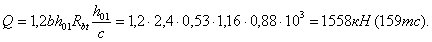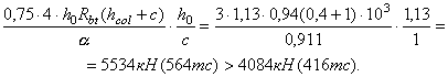 Определяем предельную величину поперечной силы, которую может воспринять монолитная плита ростверка по наклонному сечению, обеспеченному от образования нормальных трещин и проходящему от плоскости внутренних граней свай крайнего ряда до ближайшей наружной грани сборного башмака: