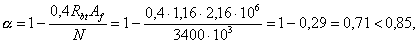 По формуле (2) определяем коэффициент a, учитывающий частичную передачу продольной силы на плитную часть ростверка через стенки стакана