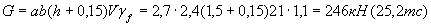 G=ab (h+0,15) Vgf =3,3×2,4 (1,5+0,15) 21×1,1 = 302 кН (30,6 тc).