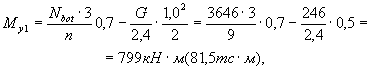 Мbot = М+Qh = 49 + 20×1,5 = 79 кН×м (8,1 тс×м).