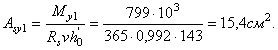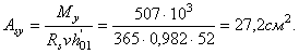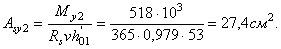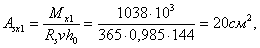 Пользуясь формулами (19) и (23), определяем требуемое сечение арматуры из стали класса A-III (Rs = 365 МПа):
