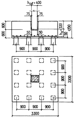 Задаемся толщиной монолитного ростверка 60 см. Расчет на продавливание проводим для составной конструкции из днища сборного стакана и плиты ростверка. Суммарная толщина дна сборного стакана и монолитного ростверка (от нижней грани колонны) равна