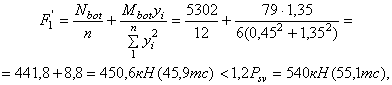 реакций всех свай, расположенных с одной стороны от оси колонны в наиболее нагруженной