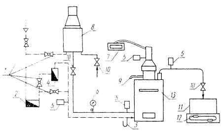Продукты сгорания следует отбирать пробоотборником, схема которого приведена на черт. 3.