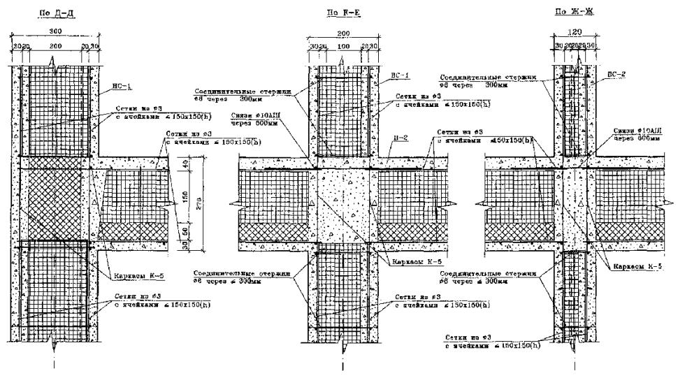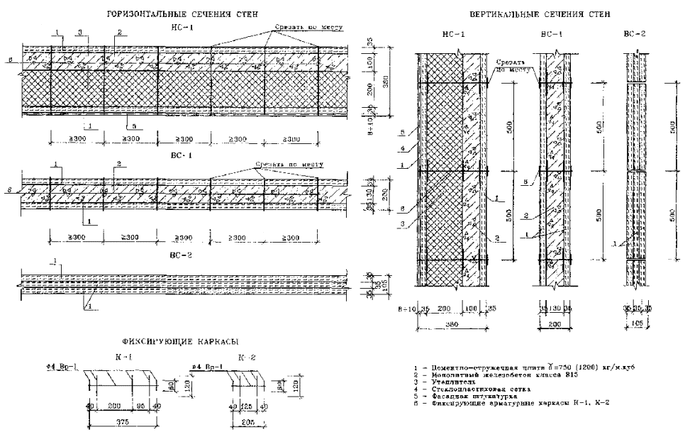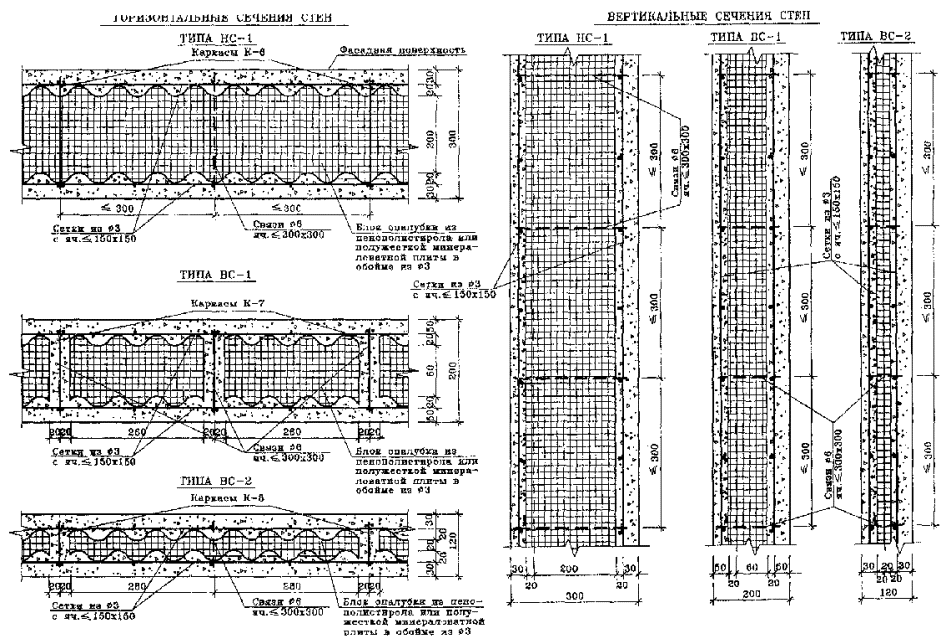 Несущий бетонный каркас в полостях блоков из ПСБ-С, оштукатурены с двух сторон |